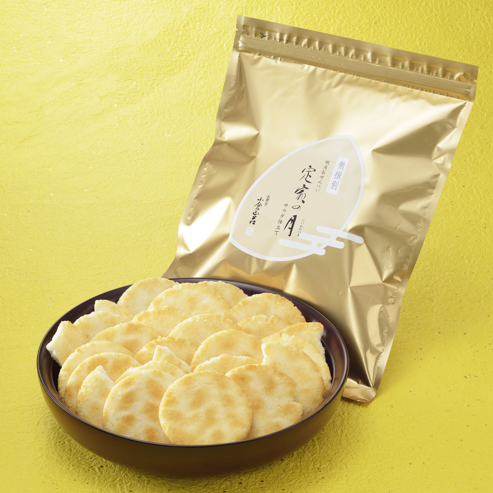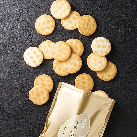 ゆらめく薄月、清廉な朗月、魅惑の赤月など移ろう月の姿をおせんべいに重ねました。ふっくらと焼きあげた三趣の味をお楽しみください。