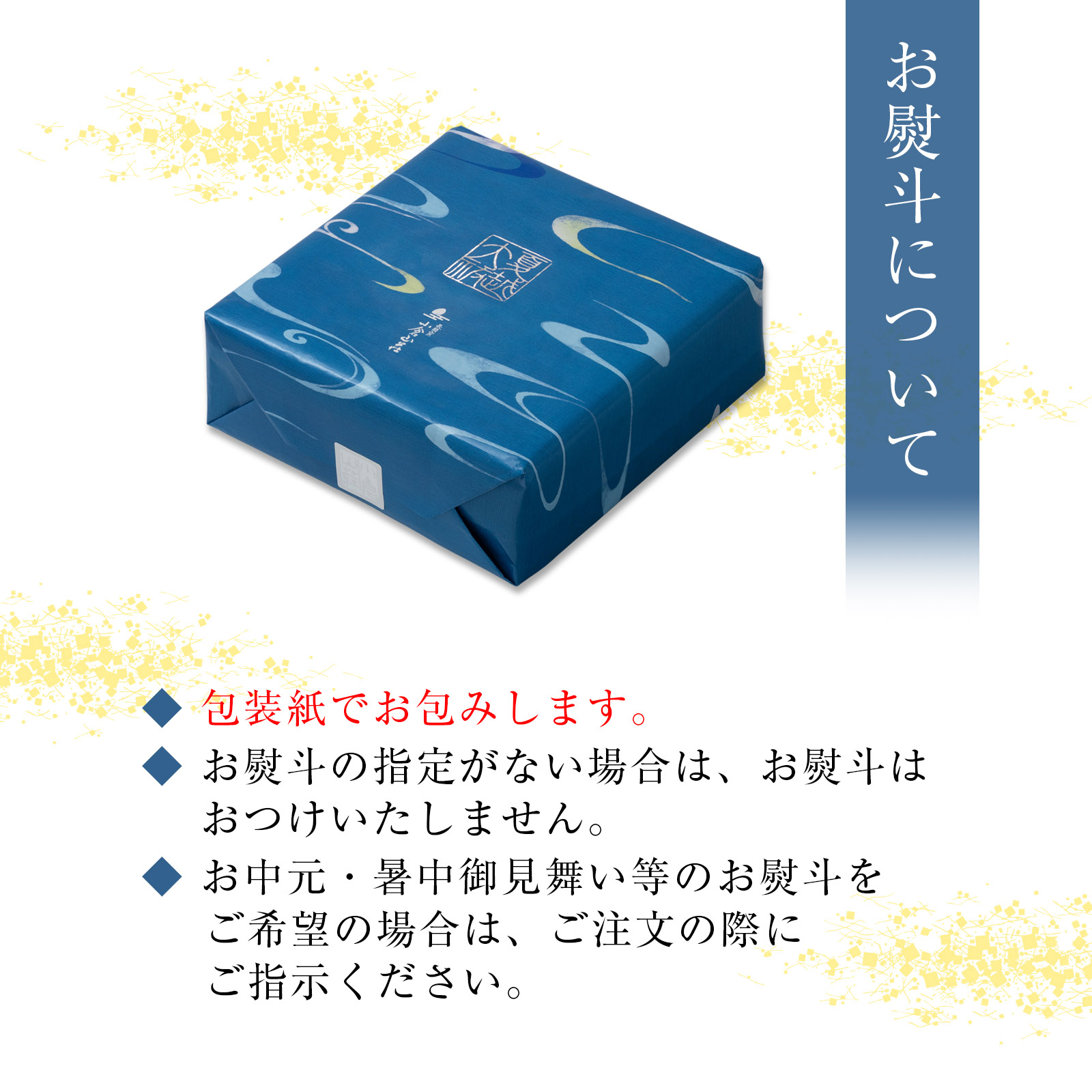 この度の贈るというご縁がふたたびめぐってこないと思えば、けっしておろそかにできません。先様にすこしでも多く喜んでいただきたい。