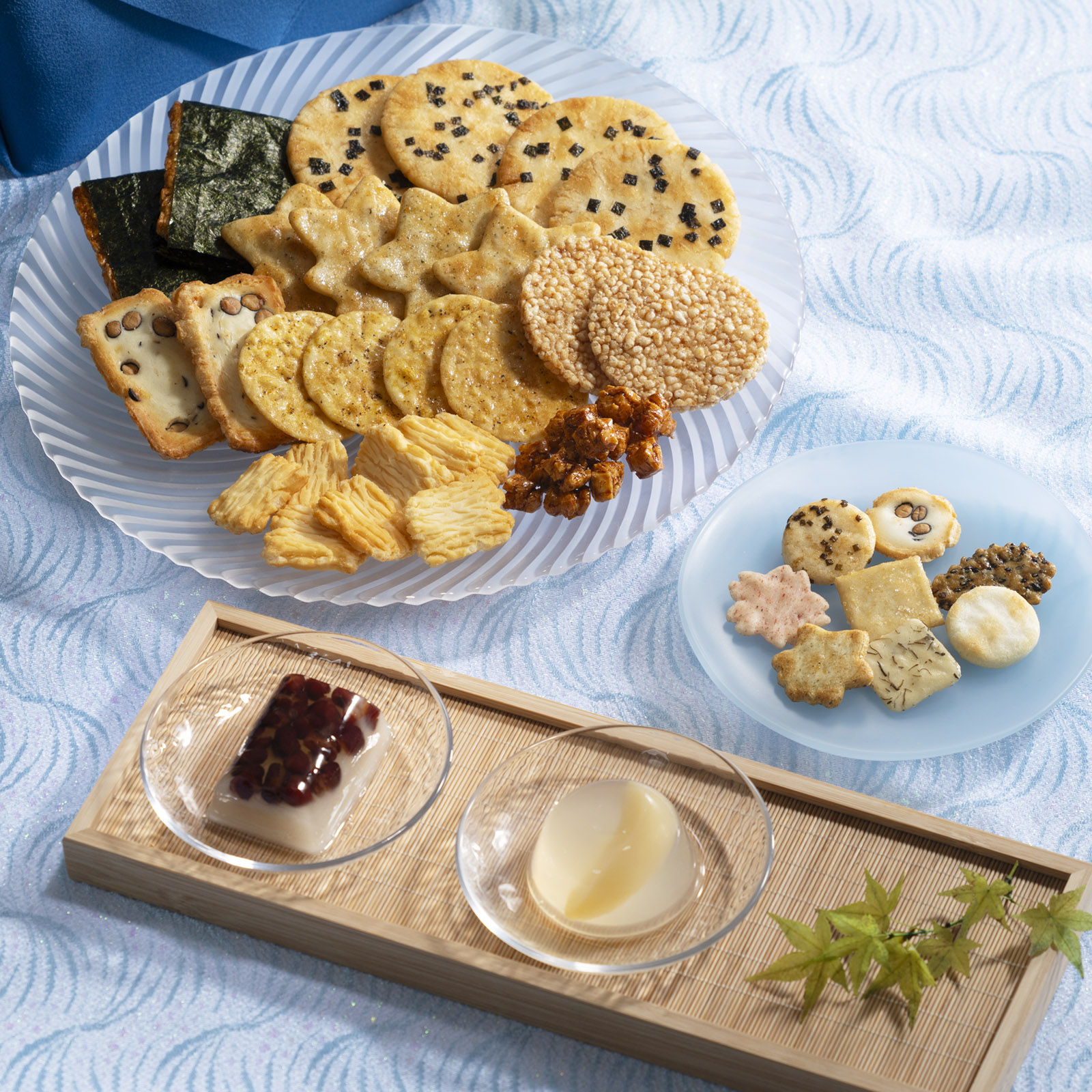 古くから穢れを祓う力を持つとされた塩。まろやかな藻塩でおかきの旨みを引き立たせました。 -