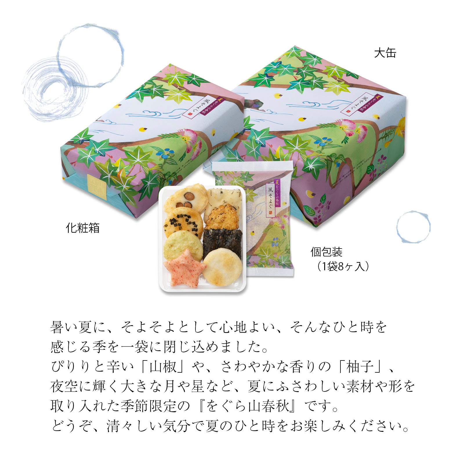 暑い夏に、そよそよとして心地よい、そんなひと時を感じる季を一袋に閉じ込めました。