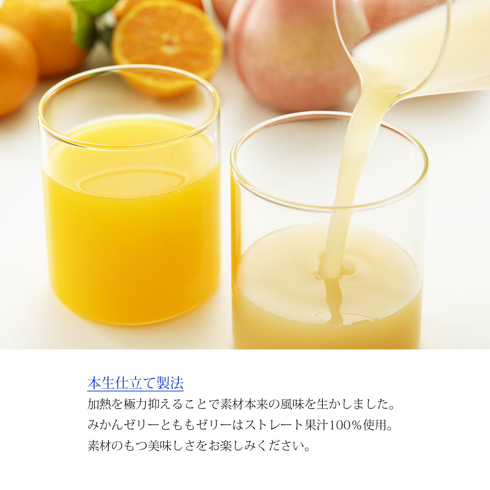 国内産の温州みかんストレート果汁100%を使用した、フレッシュではじけるような風味豊かなみかんゼリー。