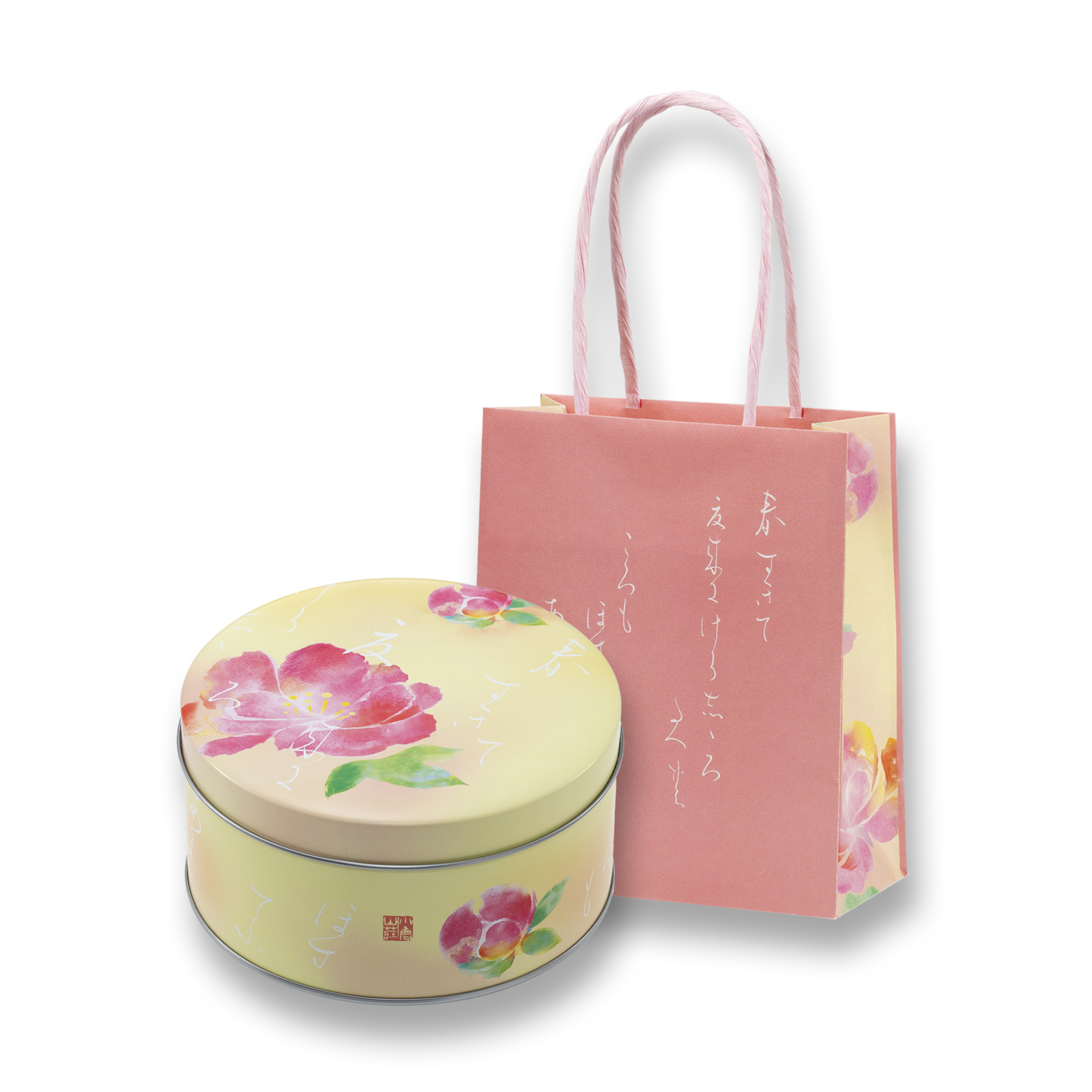 花型のあられやチョコせんべい、海老や抹茶など、味も見た目も彩々のあられを愛らしい小さな缶にお詰めしました。専用手さげ袋付きで母の日ギフトにもおすすめのひと品でございます。
