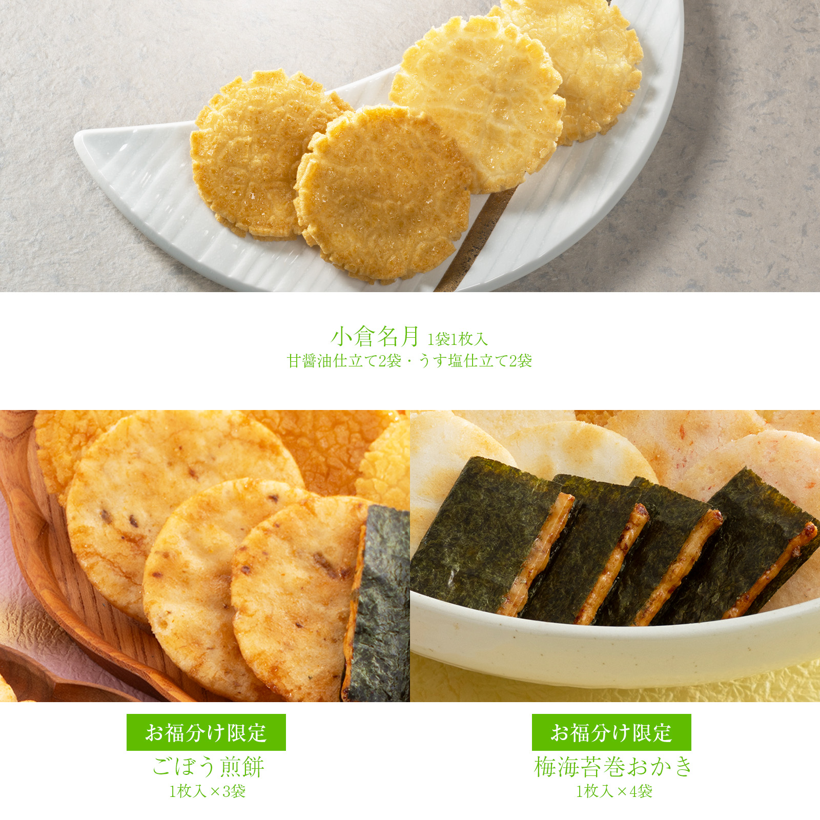 ●小倉名月×4枚(甘醤油仕立て、うす塩仕立て 各2枚)