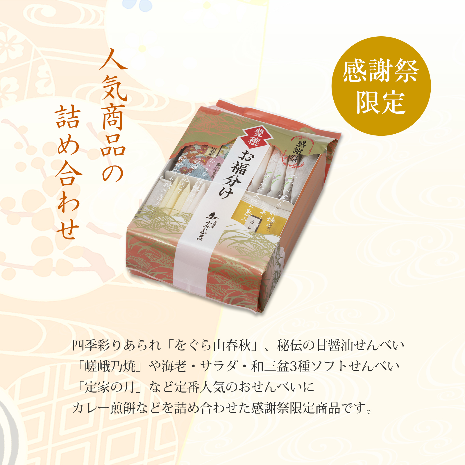 をぐら山春秋 1袋8ヶ入×4袋 八趣のあられ一つひとつに込められた、和歌への想いと季節の風情。