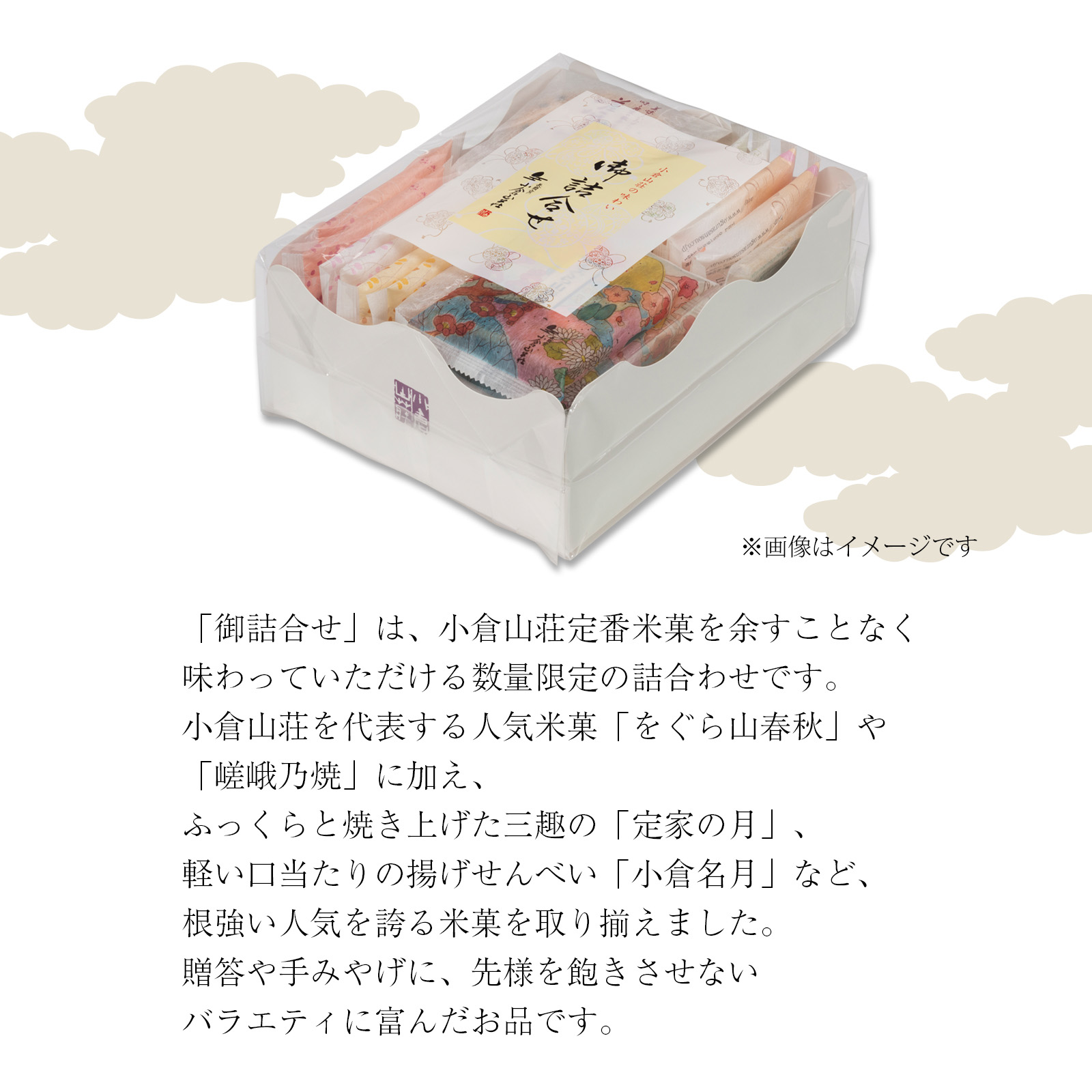 「御詰合せ」は、小倉山荘定番米菓を余すことなく味わっていただける数量限定の詰合わせです。